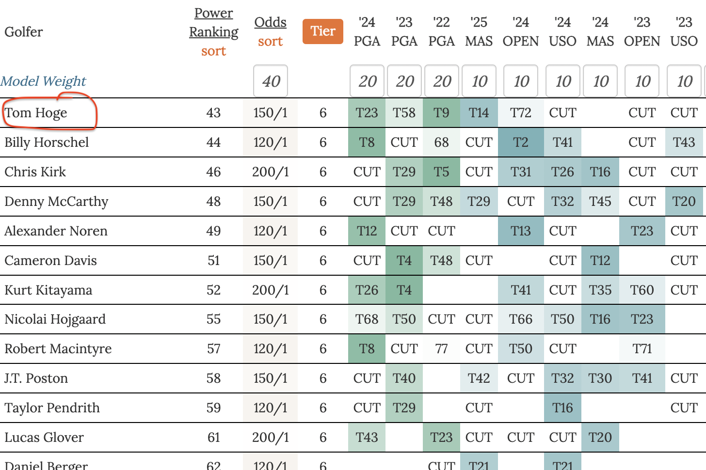 Tier 6 Pick: Tom Hoge
