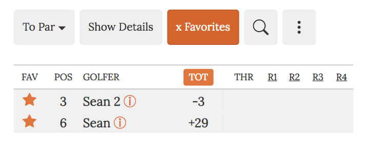 Click on TOT, R1, R2, R3, R4 column headers to sort your leaderboard.