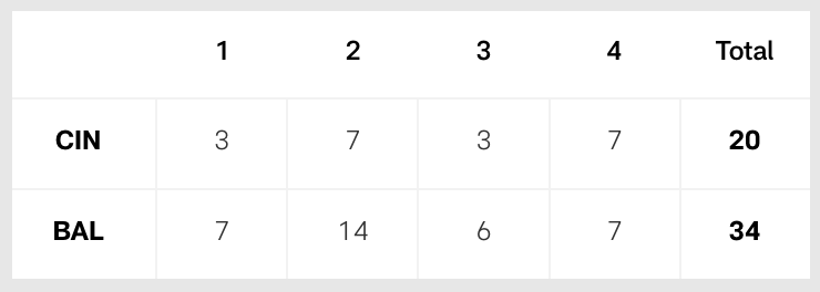 The score was 7-3 after first quarter. - 2nd Quarter: 0-1